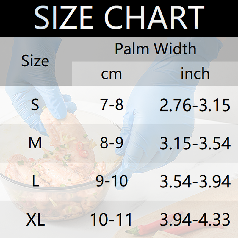 El paquete incluye: 1 * 100 guantes desechables de nitrilo aptos para uso alimentario.