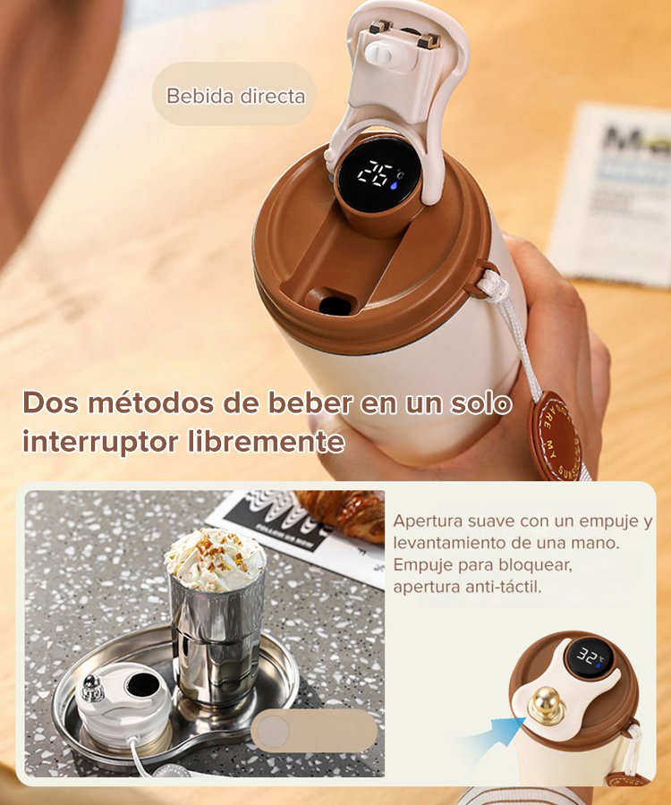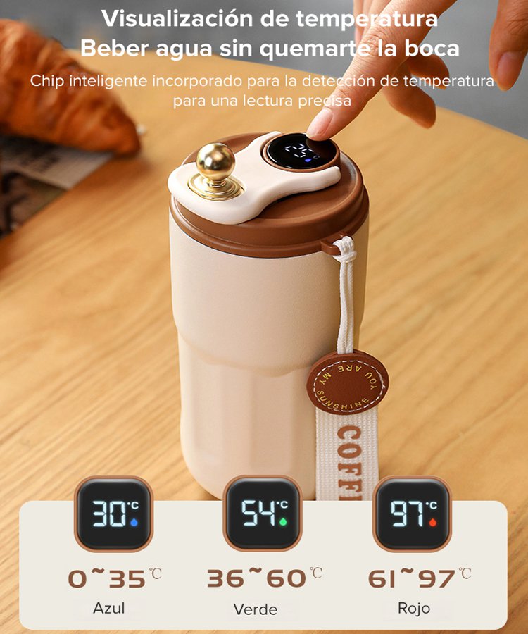 Taza de café inteligente con aislamiento térmico y visualización de temperatura
