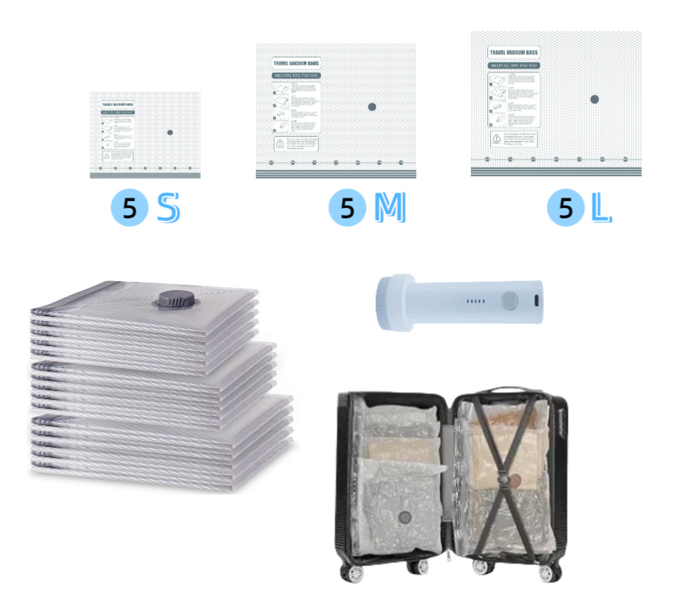 Juego de Bolsas de Compresión al Vacío para Viaje con Bomba Inalámbrica