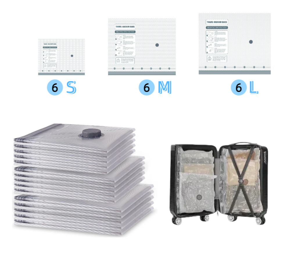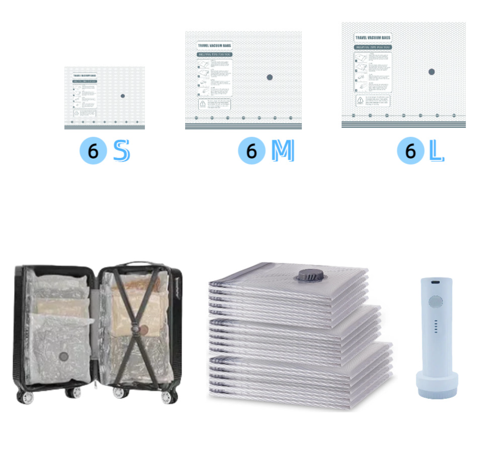 Ahorra 3 Veces más Espacio: Reduce el volumen de la ropa y la ropa de cama voluminosa en un 80%, maximizando el espacio en tu equipaje para viajes o almacenamiento por temporada. Su tamaño compacto cabe en el equipaje de mano; perfecta para mochileros, estudiantes o familias que necesitan espacio extra en la maleta.